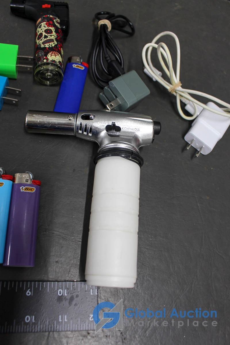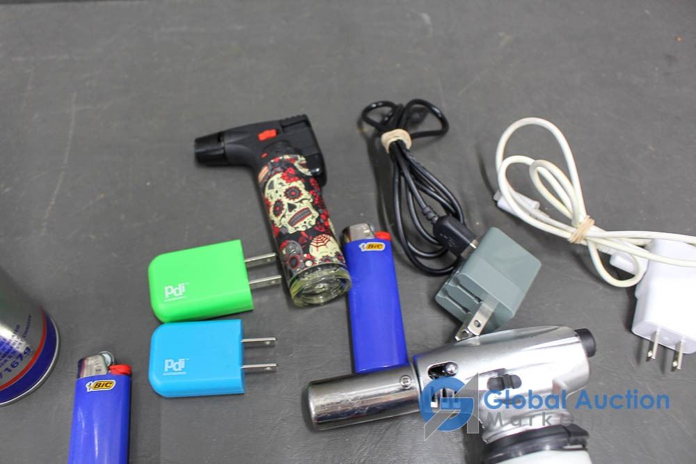 Butane Can (partially full), (2) Torches, (8) Disposable Lighters, (2) Phone Cords and (4) Adaptor P