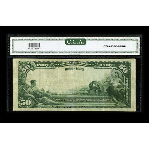 48B. CURRENCY – Notes sold referencing a third-party grading service are sold "as is" without any express or implied warranty, except for a guarantee by Auctioneer that they are genuine. Grading, condition or other attributes of any lot may have a material effect on its value, and the opinion of others, including independent grading services such as PCGS Currency, PMG, and CGA may differ with that of Auctioneer. Auctioneer shall not be bound by any prior or subsequent opinion, determination, or certification by any independent grading service. The grades assigned by any grading service to any note offered in any Heritage Currency Auctions of America sale represent the opinion of that grading service only,and may differ in material respects from the grade assigned to the same note in previous sales by HCAA or other auction companies, or from the grade that would be assigned by any other grading service. HCAA is unable to view any third party graded item outside of the holder, and specifically disclaims any liability of any kind to bidders who bid on third party graded items for mistakes of commission or omission by any grading service. Bidders are hereby notified that currency grading standards have changed in the past and are subject to change in the future, and that the only remedy bidder has with respect to third party graded notes is to deal directly with the grading service certifying the item. Bidders are also advised that Auctioneer makes no representation or guarantee that any item obtained by Bidder will be assigned any particular grade by any particular grading service, and as noted herein, Bidder specifically waives any claim to right of return of any item because of the opinion, determination, or certification, or lack thereof, by any independent grading service. Certain warranties may be available from the grading services and the Bidder is referred to them for further details: Paper Money Guaranty (PMG), PO Box 4711, Sarasota FL 34230; PCGS Currency, PO Box 9458, Newport Beach, CA 92658; Currency Grading & Authentication (CGA), PO Box 418, Three Bridges, NJ 08887.
