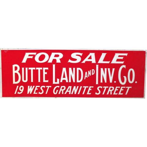 Butte Land Investment NOS Tin Embossed Sign 9 x 28"