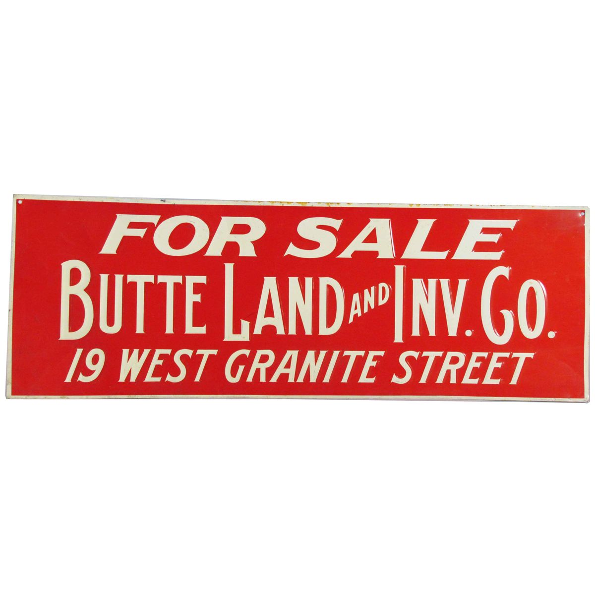 Butte Land and Inv. Co. Embossed Tin Sign. A couple wrinkles and minor rust at top edge otherwise very good condition. 28 X 9 1/2 inches.