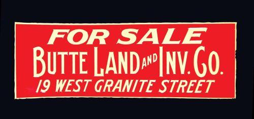 Butte Land and Investment Co. Embossed Tin Sign. 28 X 9 1/2 inches.