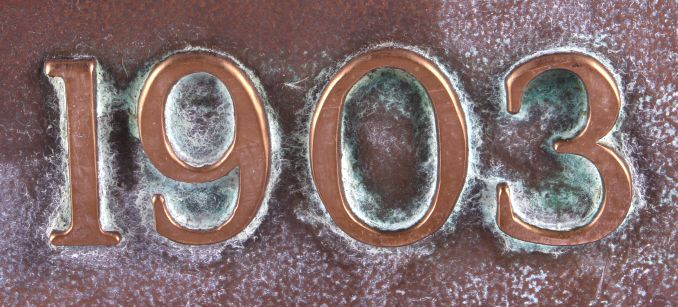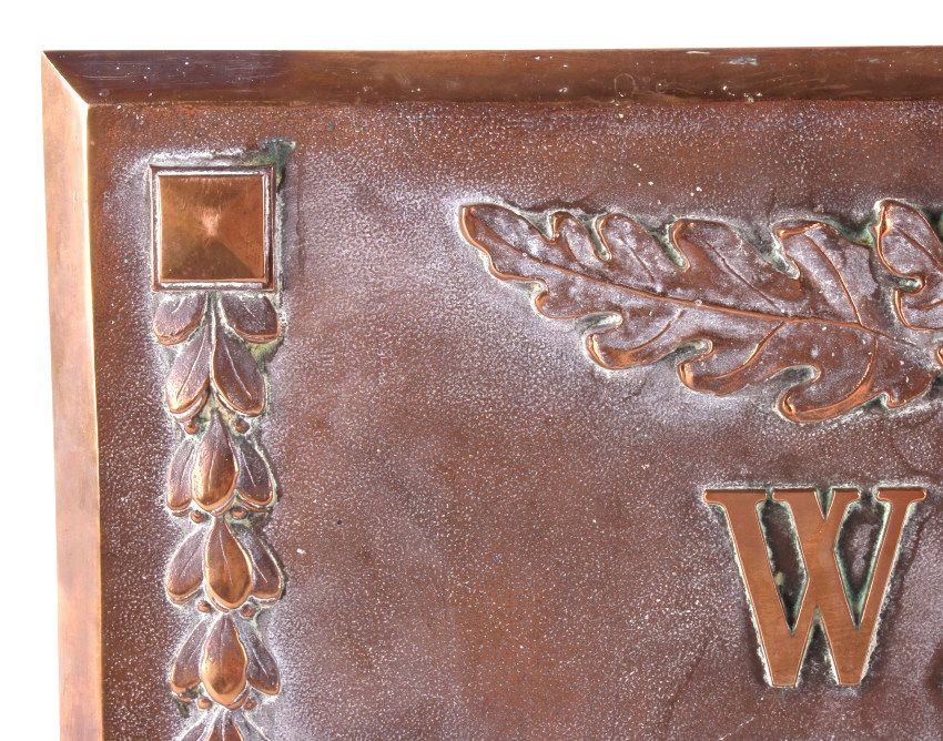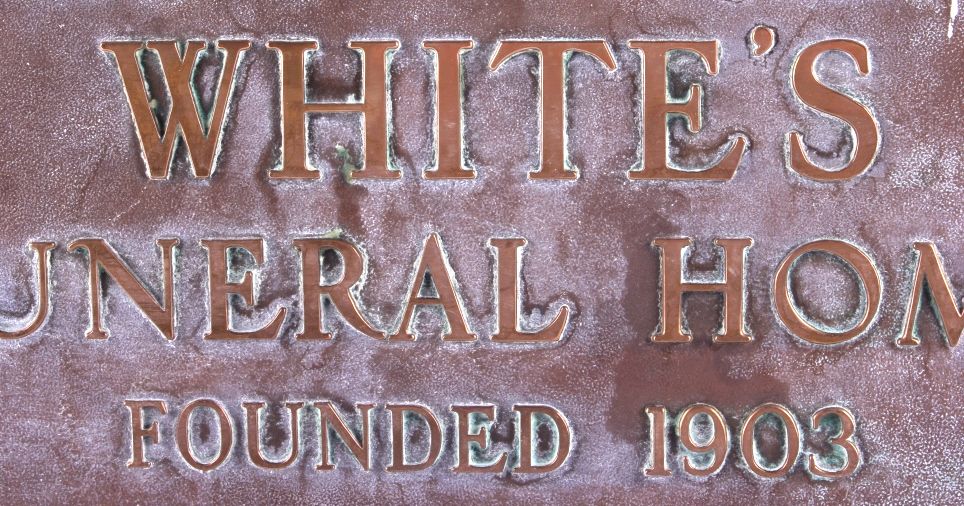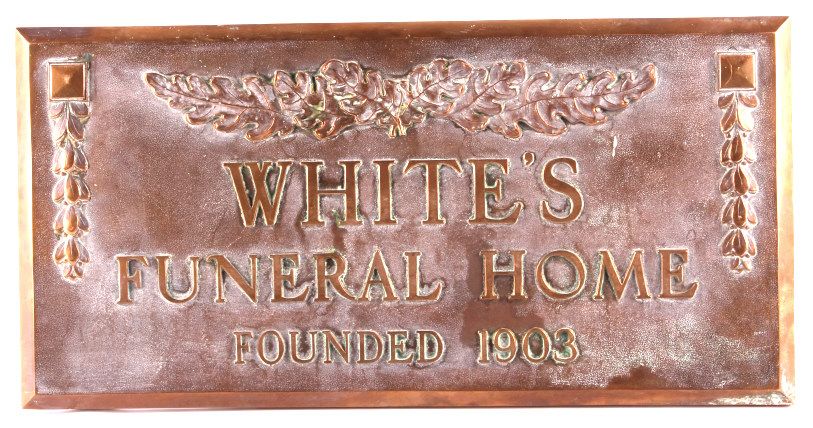 This is an original Butte Montana sign. The sign reads "White's Funeral Home Founded 1903". The sign is made from solid copper. By the early 1900's, Butte was one of the world's largest producers of copper. This sign is in very good condition, showing patina indicative of its age. The sign measures 12" x 24".