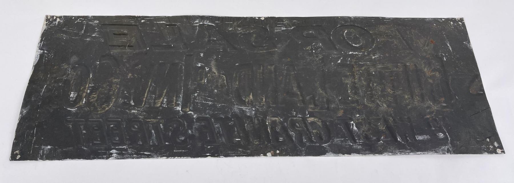Very nice old sign. Painted tin. 27.75" by 9.5".