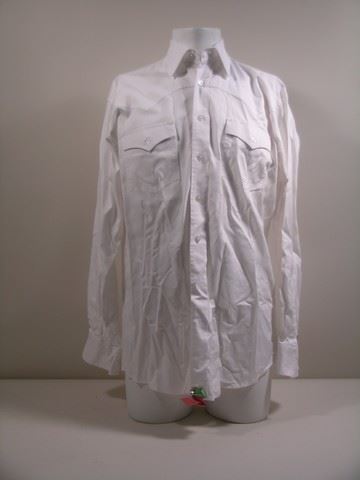 Bob Pickler (Ty Burrell) screen worn, hero, black with thin lines 'Bar WS' suit, and white Western style 'Miller Ranch' shirt. (size L) Includes wardrobe tag!