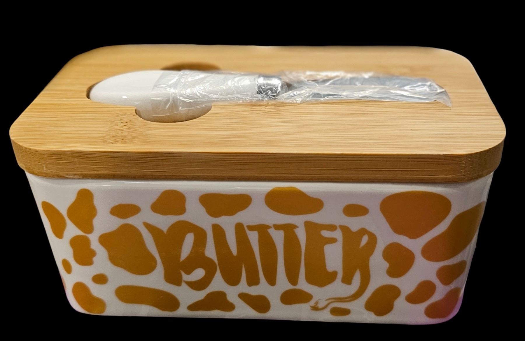 Lumicook, Porcelain Butter Dish, Bamboo Lid/Seal Ring, Shelf Pull, New Condition