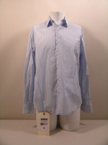 Butter - Ethan (Rob Corddry) screen worn, hero, light blue self stripe 'Perry Ellis' shirt. (size L) Includes wardrobe tag!