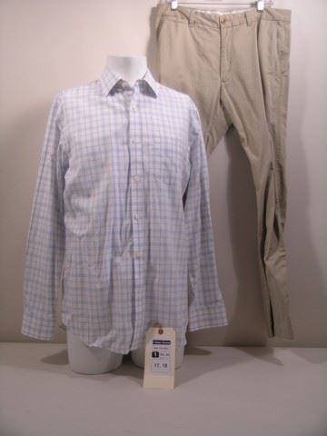 Ethan (Rob Corddry) screen worn, hero, white with blue plaid 'Banana Republic' shirt, (size M) and light khaki 'Banana Republic' pants. (size 34) Includes wardrobe tag!