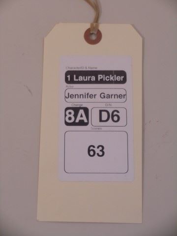 Laura (Jennifer Garner) screen worn, hero, pink with orange floral print apron. Includes wardrobe tag!