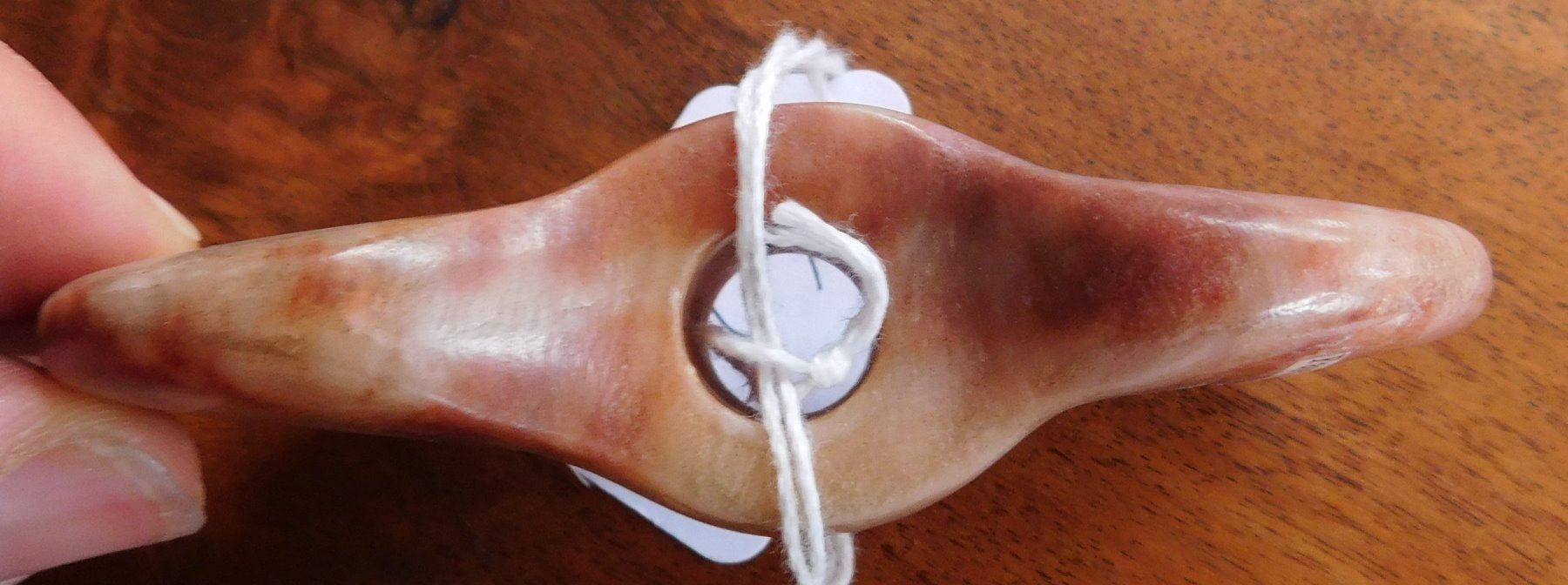 Butterfly Bannerstone, pre-historic item. Made of red quartz, the item measures 4" x 2" x 1". Fayetteville, Arkansas. From an old, 1960s California collection. Condition: Great, see images. Shipping: $16.50 w/insurance and signature.