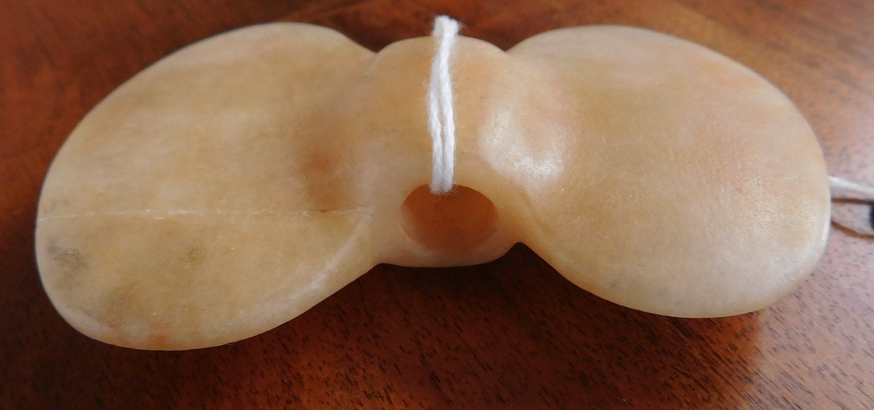 Butterfly Bannerstone, pre-historic item. Made of quartz, the item measures 3 7/8" x 2 5/8" x 3/4". Boone County, Missouri. From an old, 1960s California collection. Condition: Great, see images. Shipping: $16.50 w/insurance and signature, due to value.