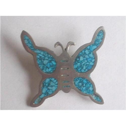 <tr><td>Title:Butterfly Brooch Alpaca Silver Turquoise Inlay</td></tr>