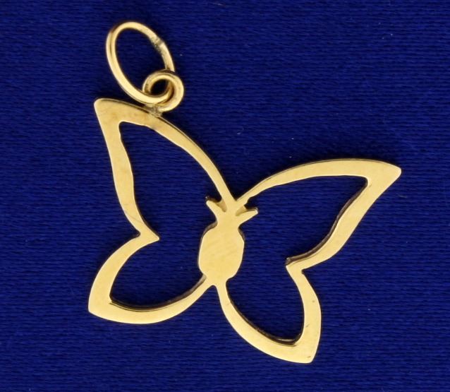 In 14k yellow gold. 1" long with bale. 1" wide. 1.6g.