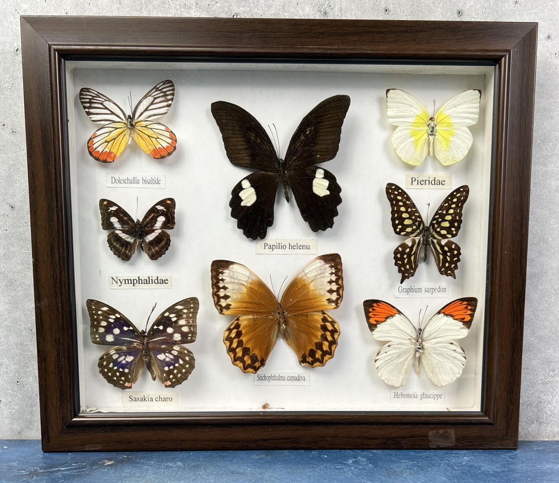 Doleschallia bisaltide, Nymphalidae, Sasakia charo, Papilio helenu, Stichophthalma camadeva, Pieridae, Graphium sarpedon, Hebomoia glaucippe. 13 1/2" by 11 1/2" framed.