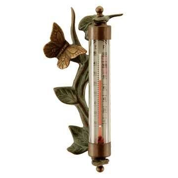 Butterfly Wall Mounted Thermometer - 8"H 4"W 2"D - Brass
