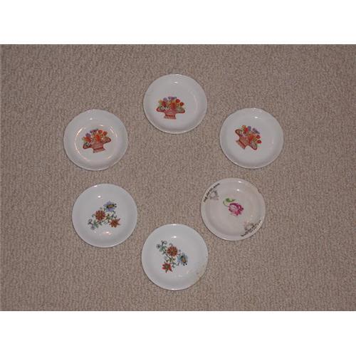 American Butterpat dishes. Different floral paterns in center of each dish. One dish has some wear.