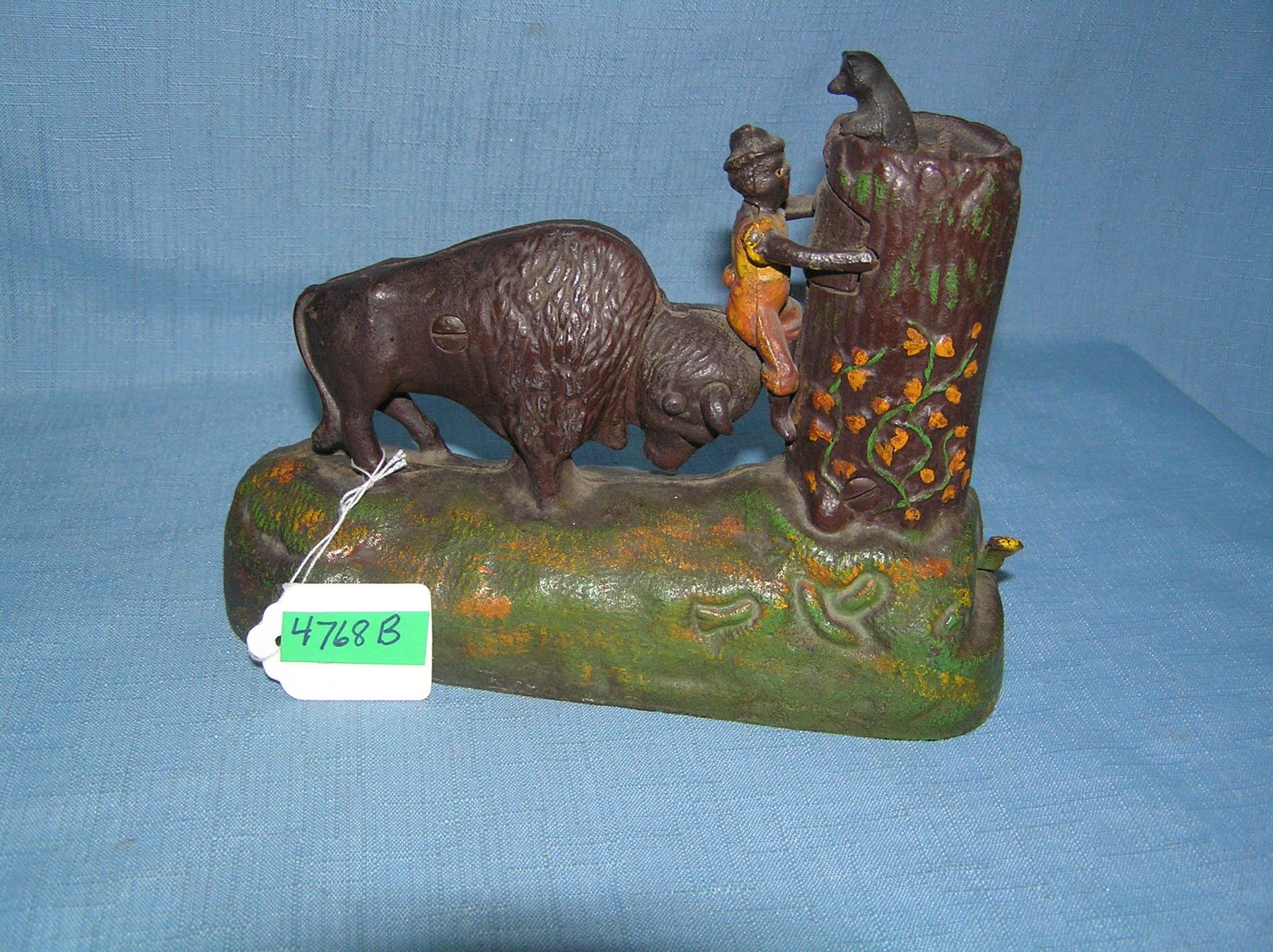 Butting Buffalo cast iron mechanical bank circa 1950s from the Book of Knowledge series est. value $375.00-$400.00
