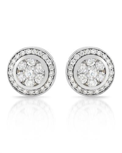 Button Stlye Stud Earring with Milgrain in 14K White Gold|348596 Grams, featuring 2 ct 68 ct ct 14 ct
