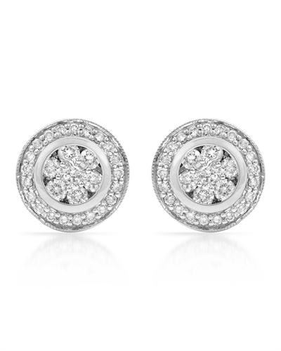 Button Stlye Stud Earring with Milgrain in 14K White Gold|411561 Grams, featuring 1.1 ct 66 ct ct 14 ct