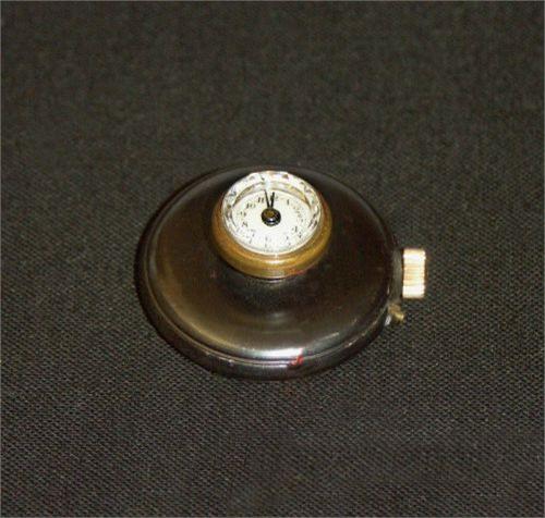 Jolie et rare montre boutonnière en métal bruni, cadran en émail, échappement à cylindre, en très bon état, vers 1890