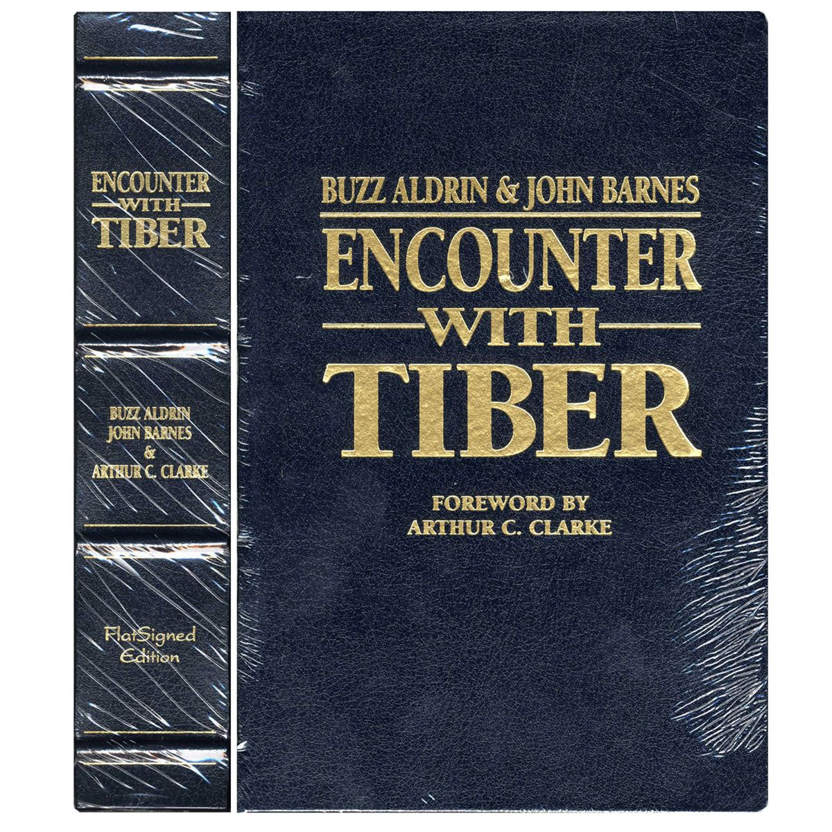 Buzz Aldrin signed limited edition of ''Encounter With Tiber,'' by Buzz Aldrin and John Barnes. The Flat Signed Press: Nashville: 2005. Signed ''Buzz Aldrin'' on special limitation page, noting this copy is number 1,230 of 1,500. Aldrin's novel chronicles two former enemies who must work together when a radio beacon from deep space is discovered. Hardcover leather bound book with gilt edges measures 6.25'' x 9.25''. An elegant limited edition in pristine condition.
