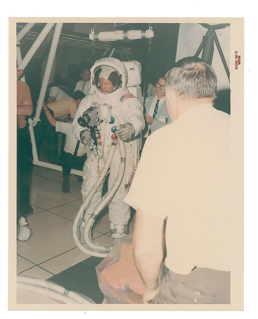 One of the most incredible aspects of the Dan Schaiewitz Collection is the astounding assortment of vintage NASA photographs. As an integral part of KSC’s PLSS training, most notably on the first lunar landing mission, he actually took part in these amazing behind-the-scenes moments: Dan himself tested Neil Armstrong’s space suit. Offered here are exceptionally rare Apollo 11 red-numbered training photographs, many of them quite possibly never-before-seen by collectors and offered here for the first time.