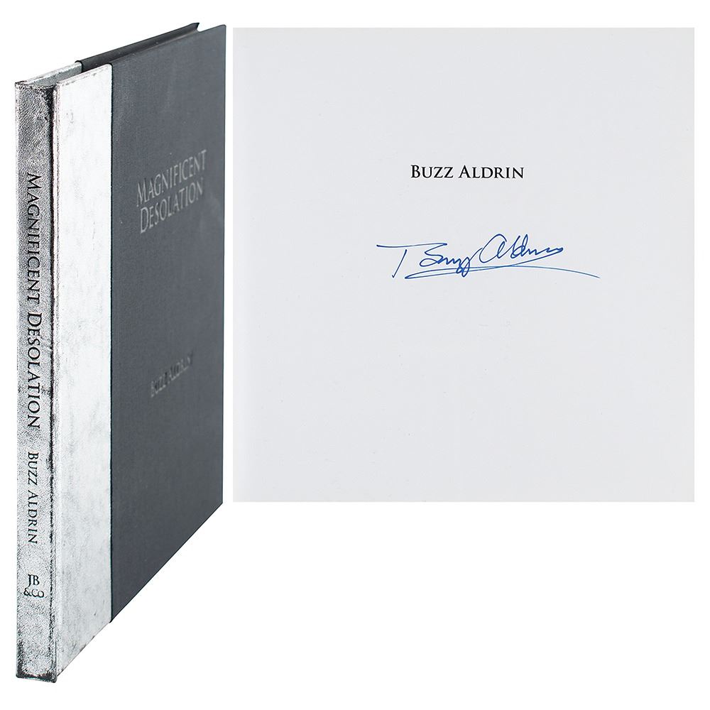 Signed book: Magnificent Desolation: Images from the Apollo 11 Lunar Mission with the Words of Astronaut Buzz Aldrin. First edition, limited issue, numbered 495/500. Reno, NV: Jack Bacon & Company, 2009. Hardcover, 8.25 x 8.25. Signed on the author's prefatory page in blue felt tip, "Buzz Aldrin." An extraordinary collection of more than 50 photographs from the historic Apollo 11 mission interspersed with the words of Aldrin, this volume was privately printed and differs from Aldrin's similarly titled autobiography. In fine condition, with rubbing to the spine. Accompanied by the publisher's certificate of authenticity.