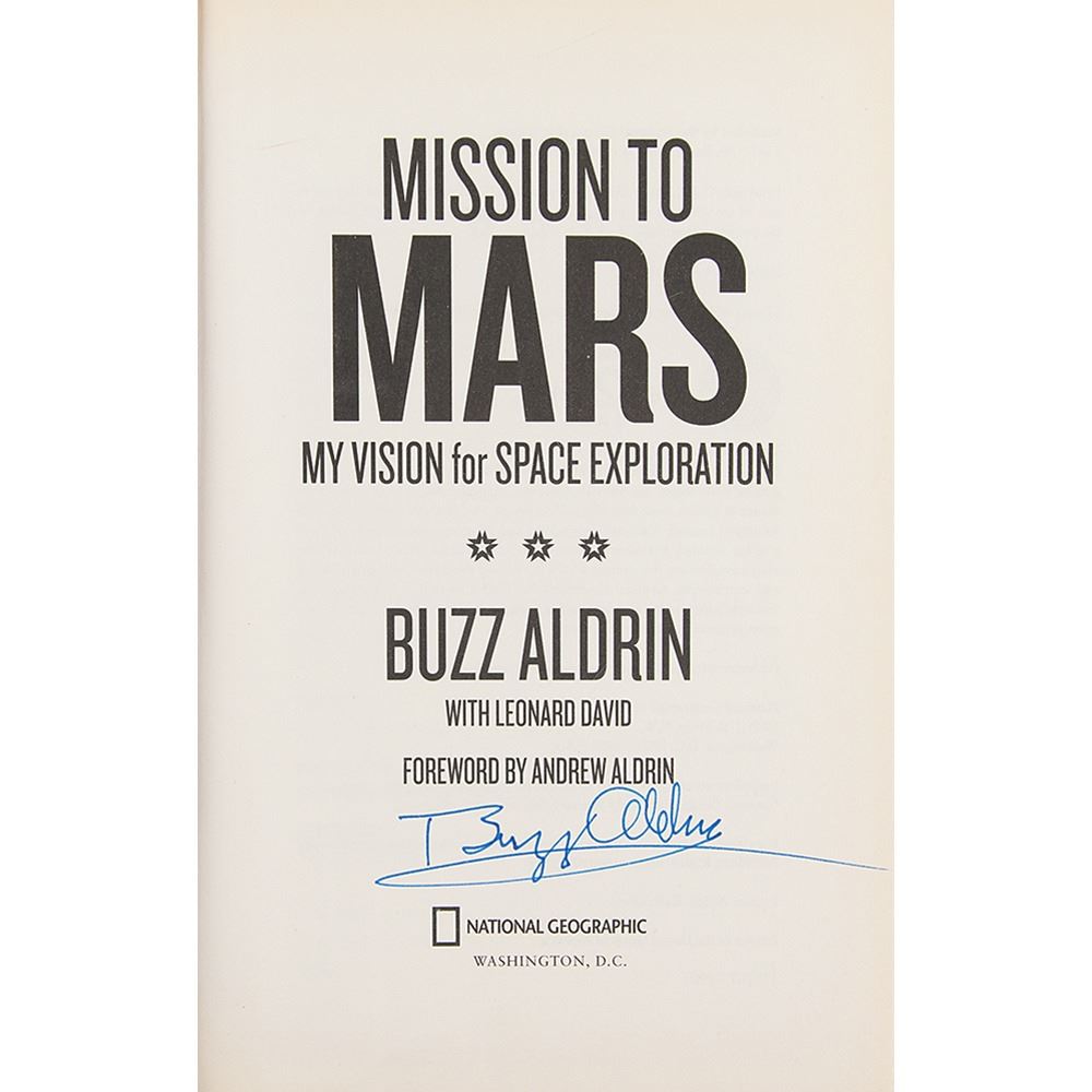 Signed book: Mission to Mars: My Vision for Space Exploration. Washington, D.C. National Geographic, 2013. Hardcover with dust jacket, 6.25 x 9.25, 258 pages. Signed on the title page in blue ink by Buzz Aldrin. In fine condition.