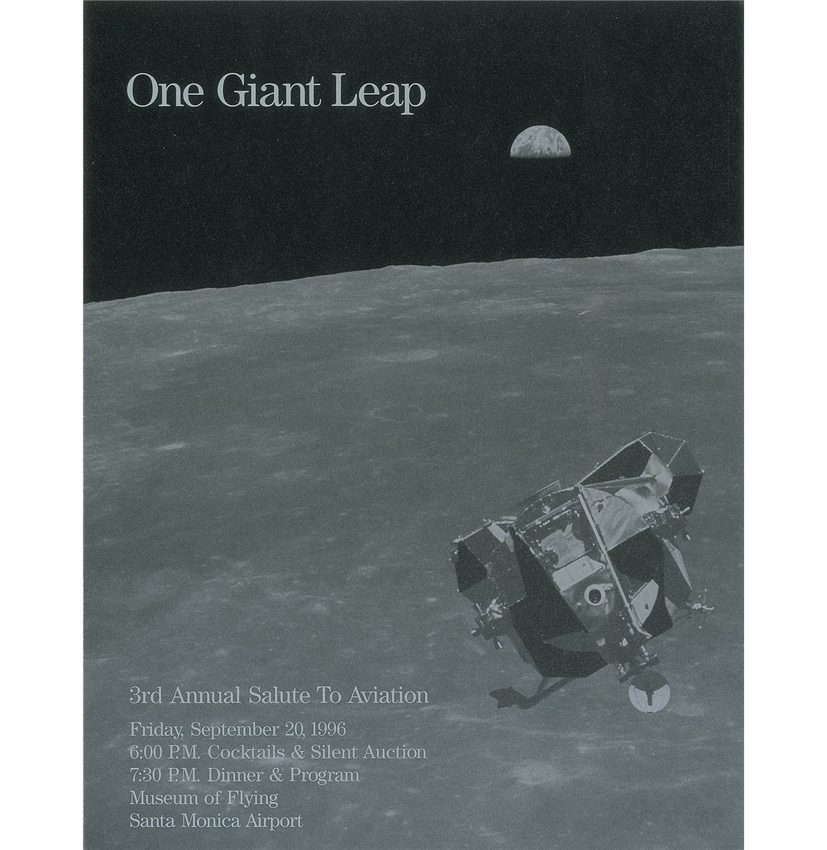Program for the Museum of Flying’s third annual salute to aviation, 8.5 x 11, two pages, held on September 20, 1996, at the Museum of Flying at the Santa Monica Airport, signed inside in black felt tip by Buzz Aldrin, Frank Borman, and Kathy Sullivan. In fine condition.