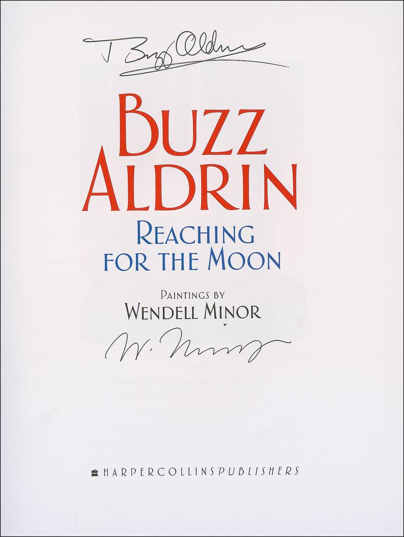 Two signed hardcover first edition books: Reaching for the Moon and Look to the Stars, each signed on the title page by Aldrin. In fine condition.