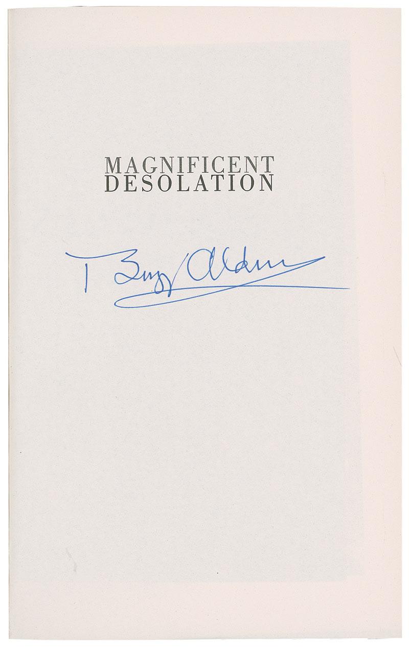 Signed book: Magnificent Desolation. First edition, first printing. NY: Harmony Books, 2009. Hardcover with dustjacket, 6.5 x 9.5, 326 pages. Signed in blue ballpoint on the half-title page. In fine condition, with some vertical scuffing to the dustjacket. Accompanied by ten candid photos taken during the signing.