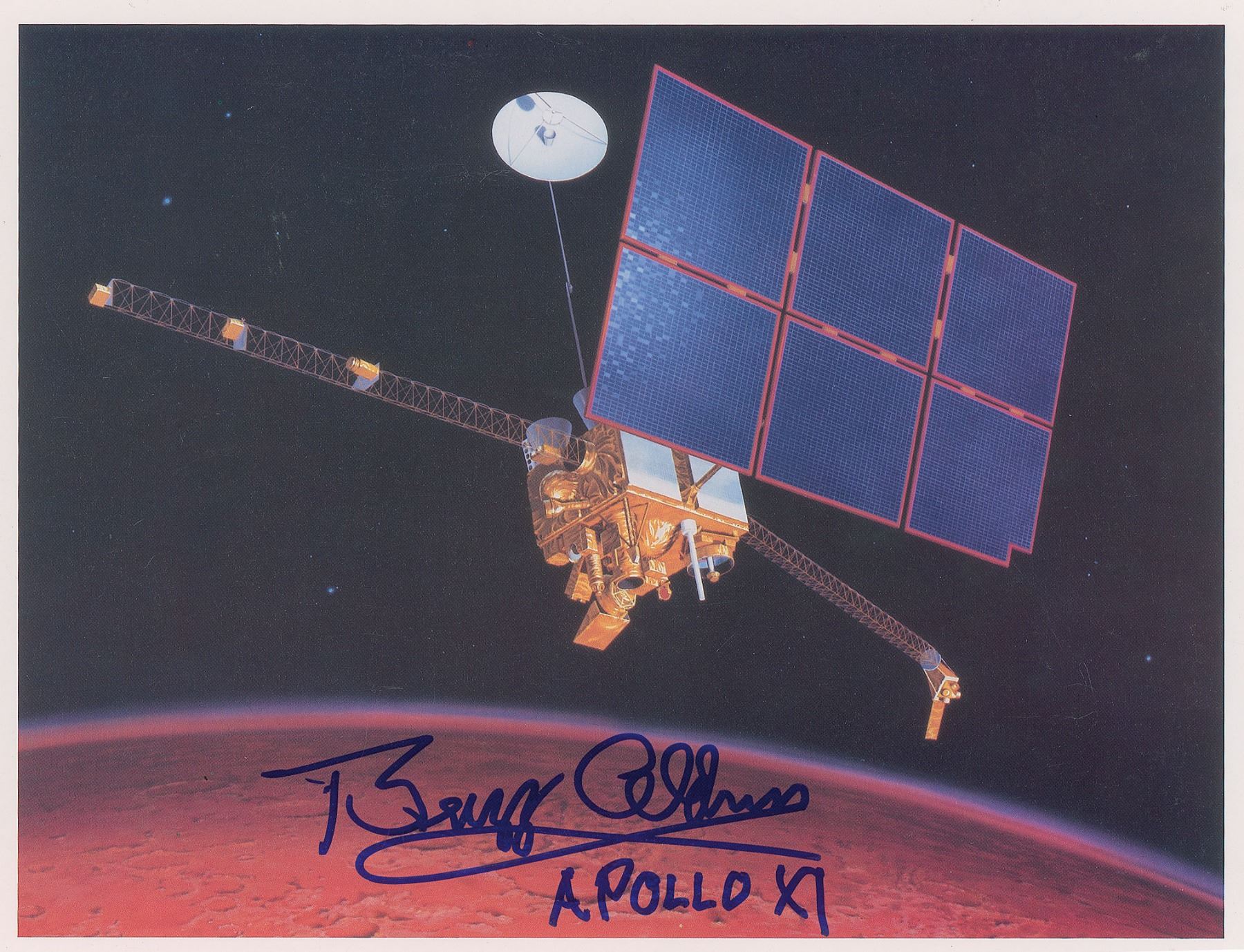 Offered directly by Buzz Aldrin: an official color 10 x 8 NASA lithograph of the Mars Observer spacecraft, signed in blue felt tip, "Buzz Aldrin, Apollo XI." In fine condition. Proceeds benefit Aldrin’s new Human SpaceFlight Institute, a premier think-tank and innovation center.