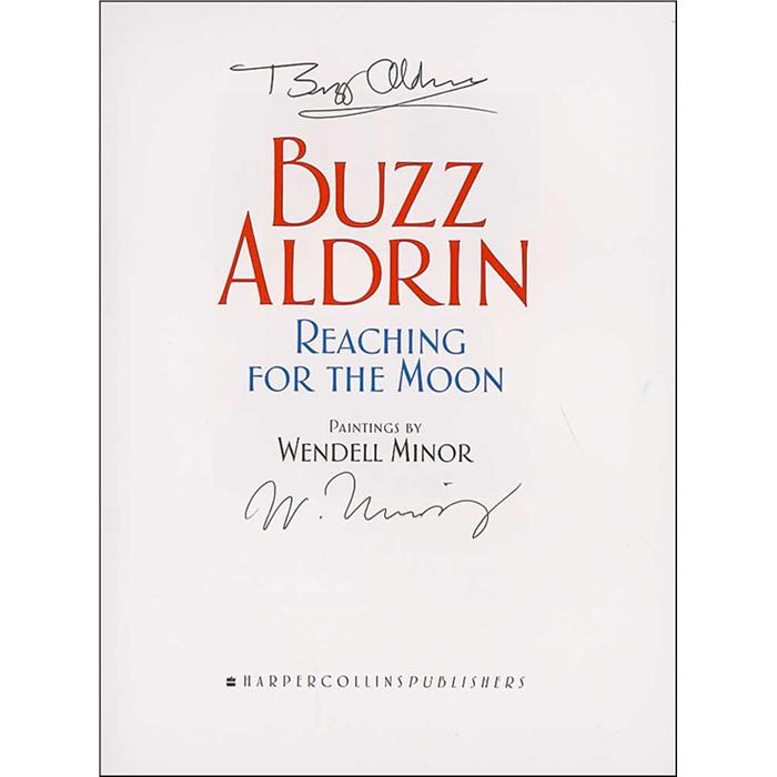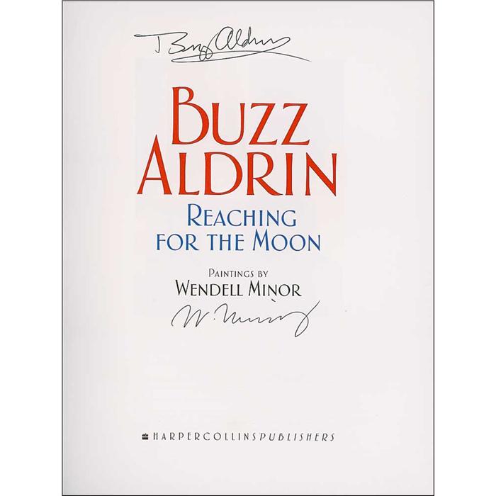 Two hardcover first editions of Reaching for the Moon, each signed in black felt tip on the title page by Aldrin and illustrator Wendell Minor. In very fine condition. Pre-certified Scott Cornish and RRAuction COA.