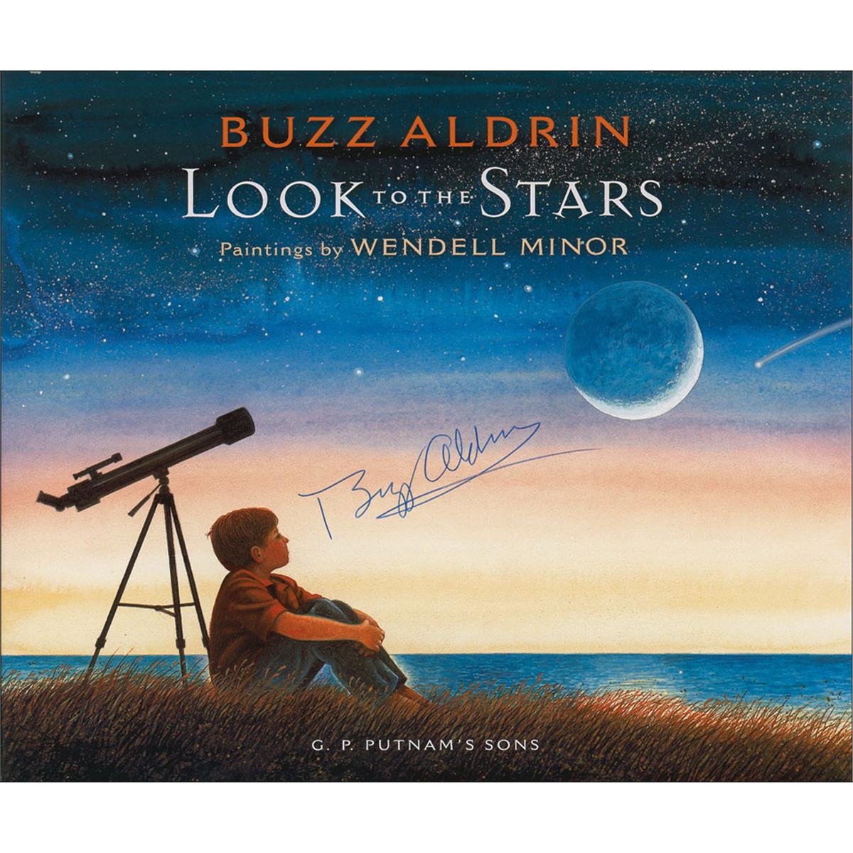 Two hardcover books: Reaching for the Moon and Look at the Stars, each signed in blue felt tip on the title page. In fine condition.