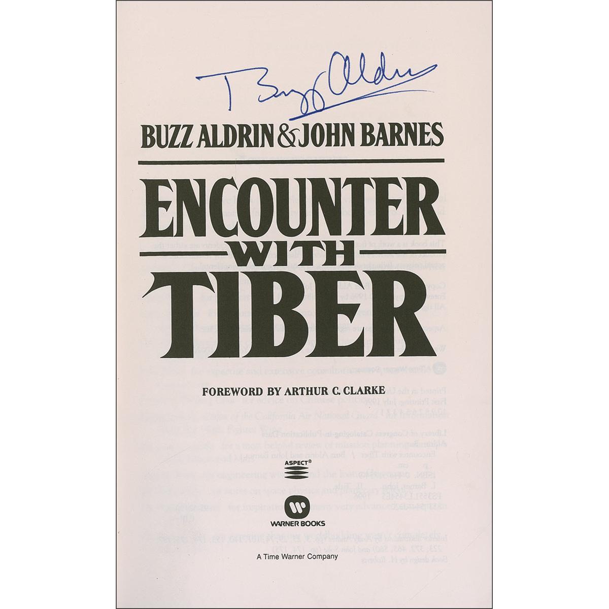 Two items: a hardcover edition of Encounter with Tiber, signed on the title page in blue felt tip; and a color 8.5 x 11 composite cardstock photo, signed in black felt tip. In fine condition, with a few light dings and creases to photo.