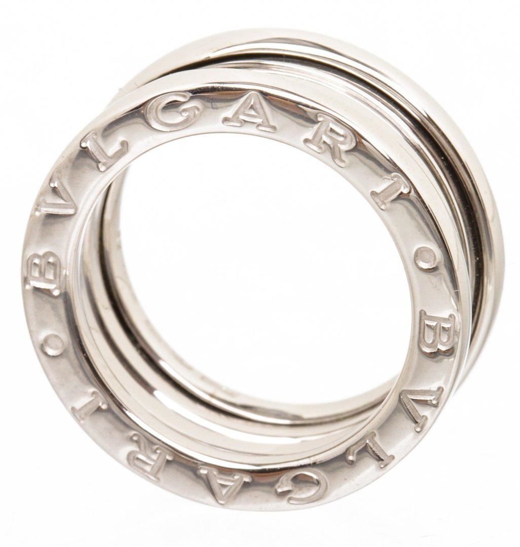 Bvlgari 18K white gold B.zero1 ring double band in designer size 48. Measurements: Length: 1 in / 3 cm Width: 1 in / 3 cm 1 in / 3 cmCONDITION: Pre-Owned Good overall, please see photographs for detail.