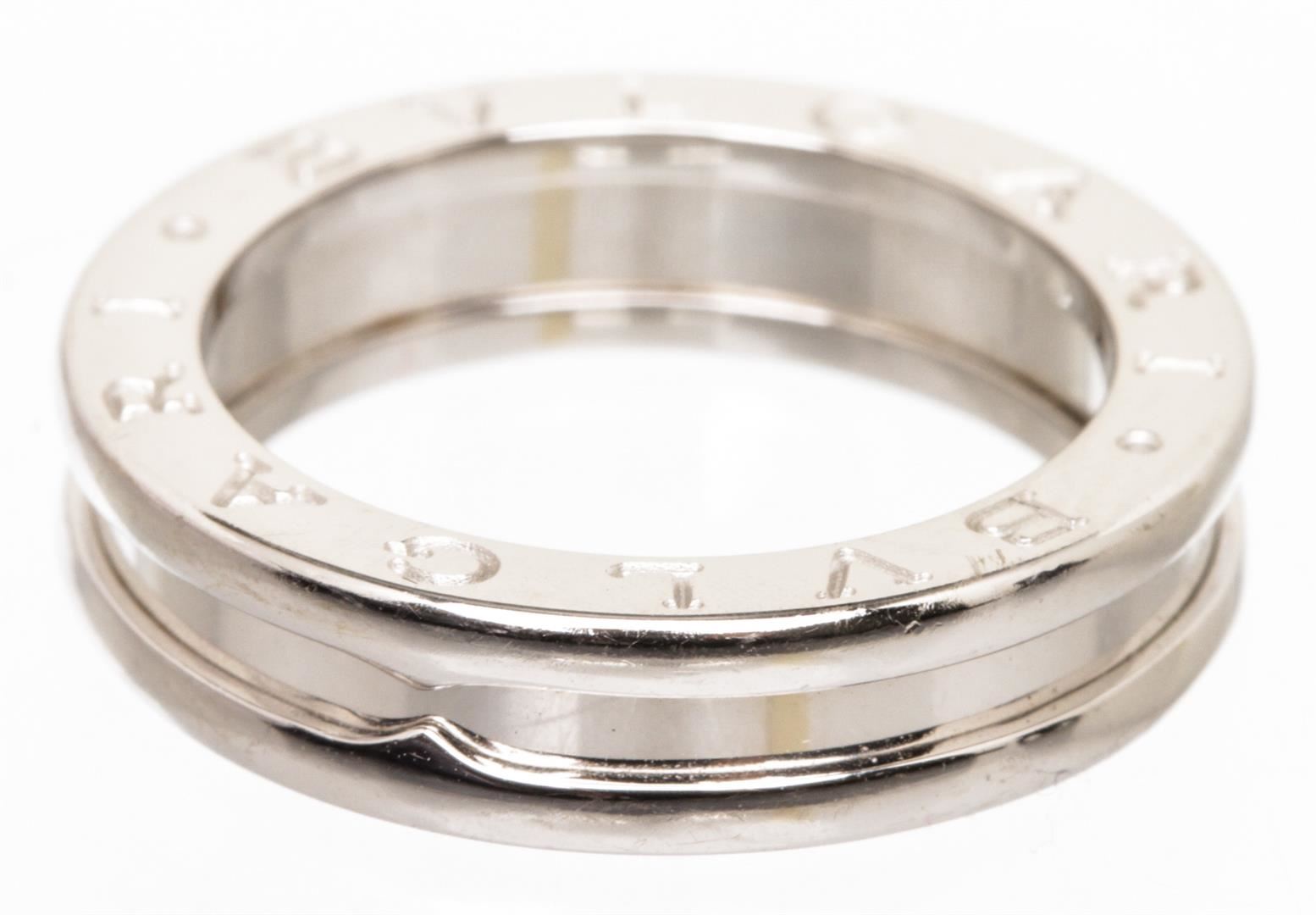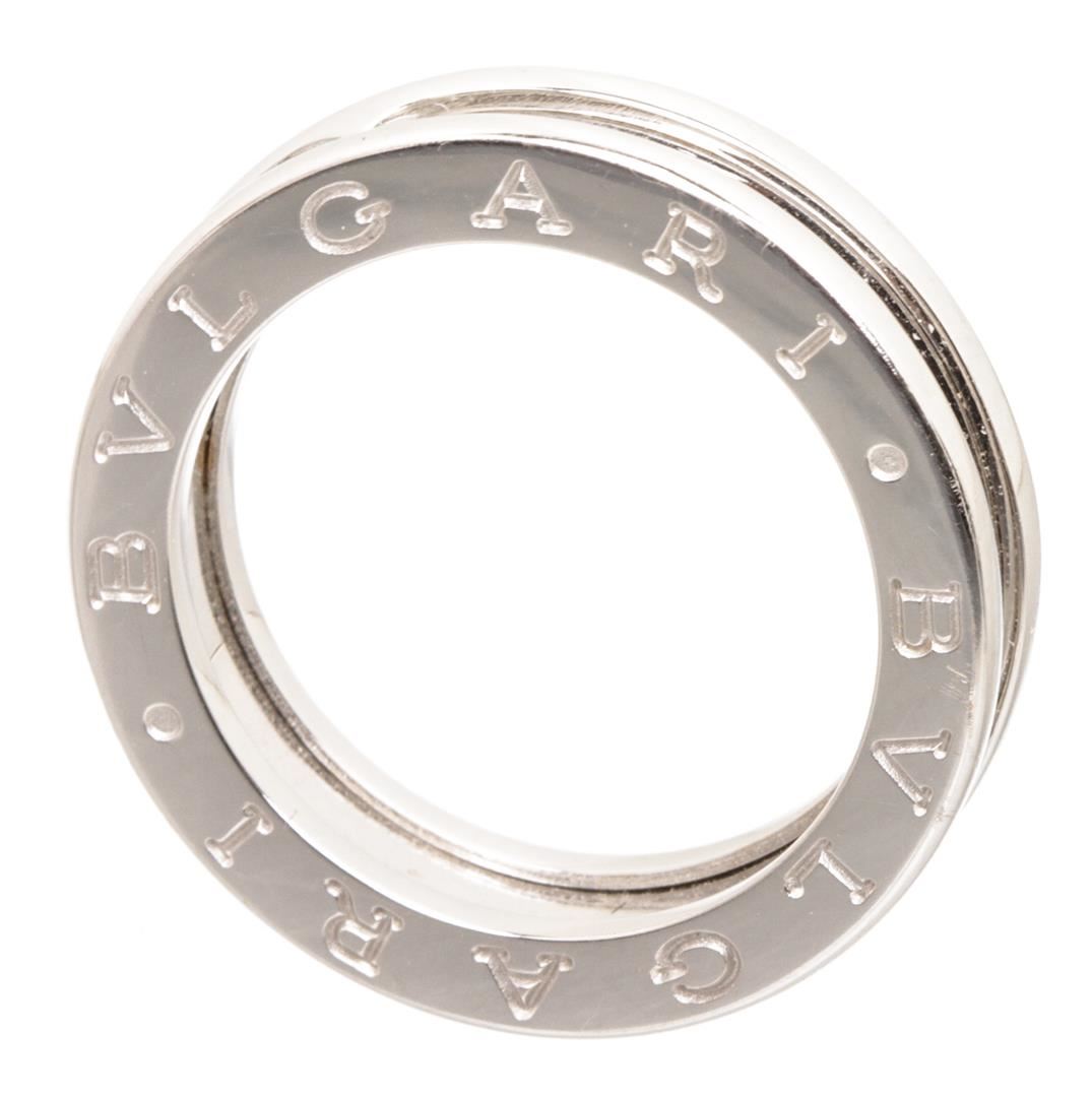 One Bvlgari 18K White Gold B.zero1 Single Ring 52. Bvlgari K white gold B.zero ring band in designer. Includes box.
