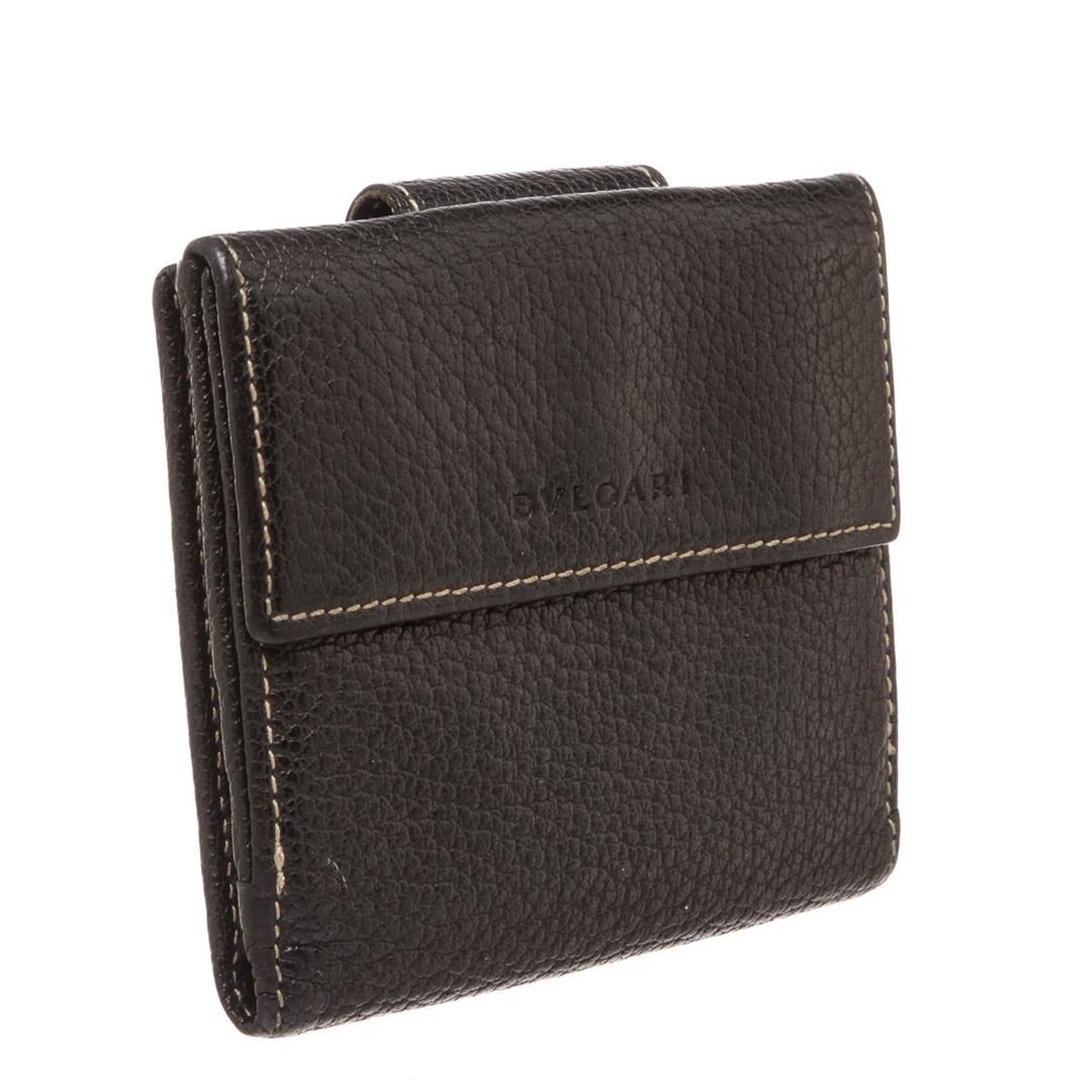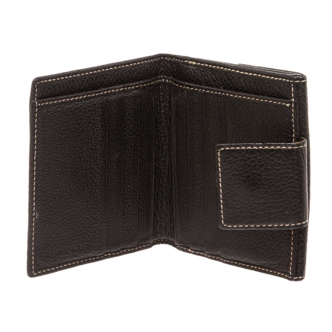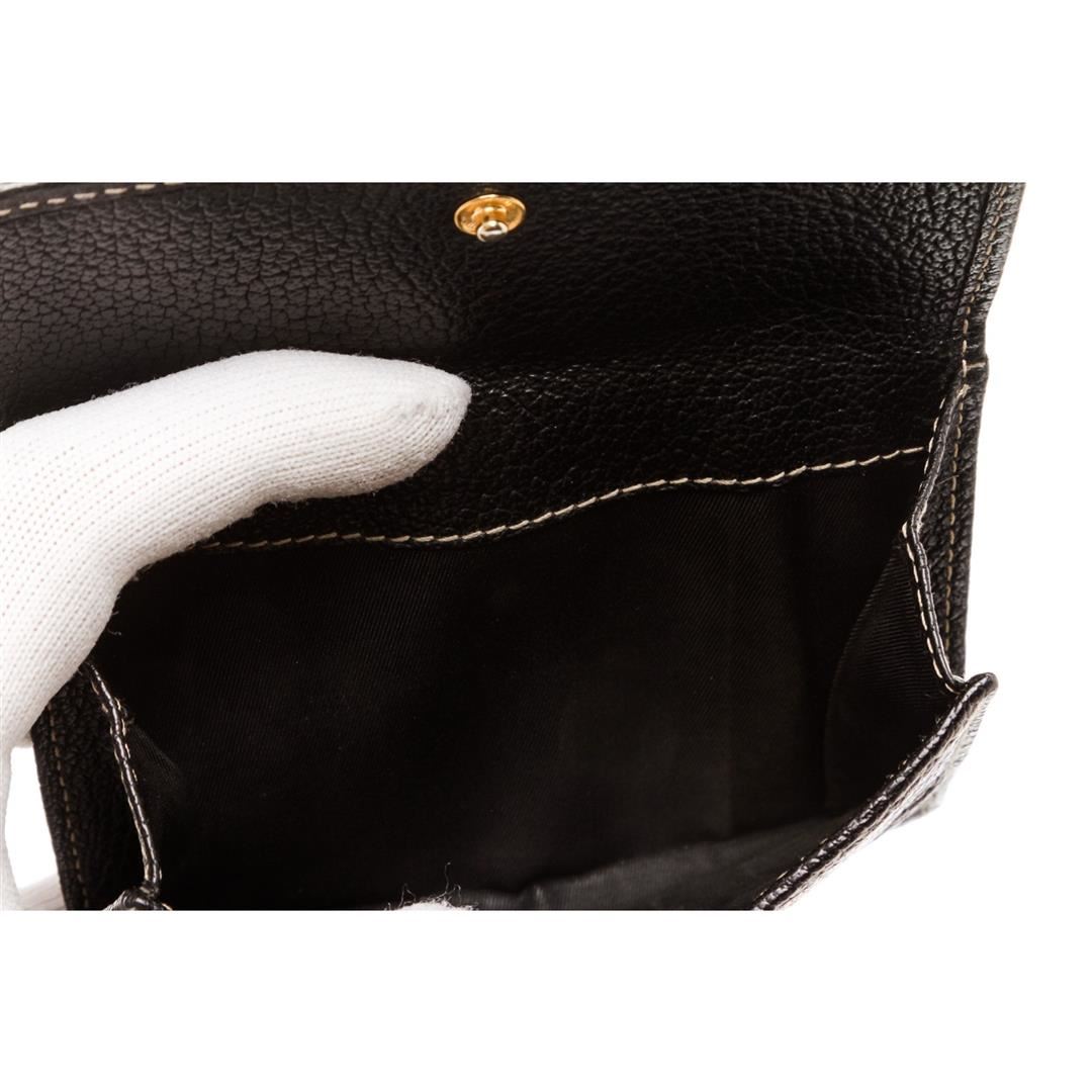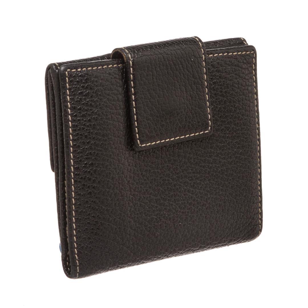 Crafted out of black leather. Inner black leather lining. Dimensions = Length: 4"/10cm Width: 4"/10cm . Item is pre-owned.