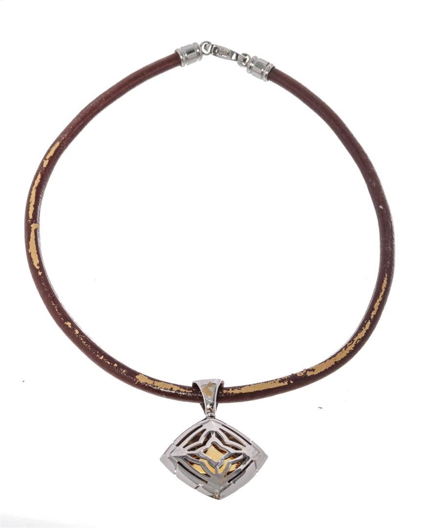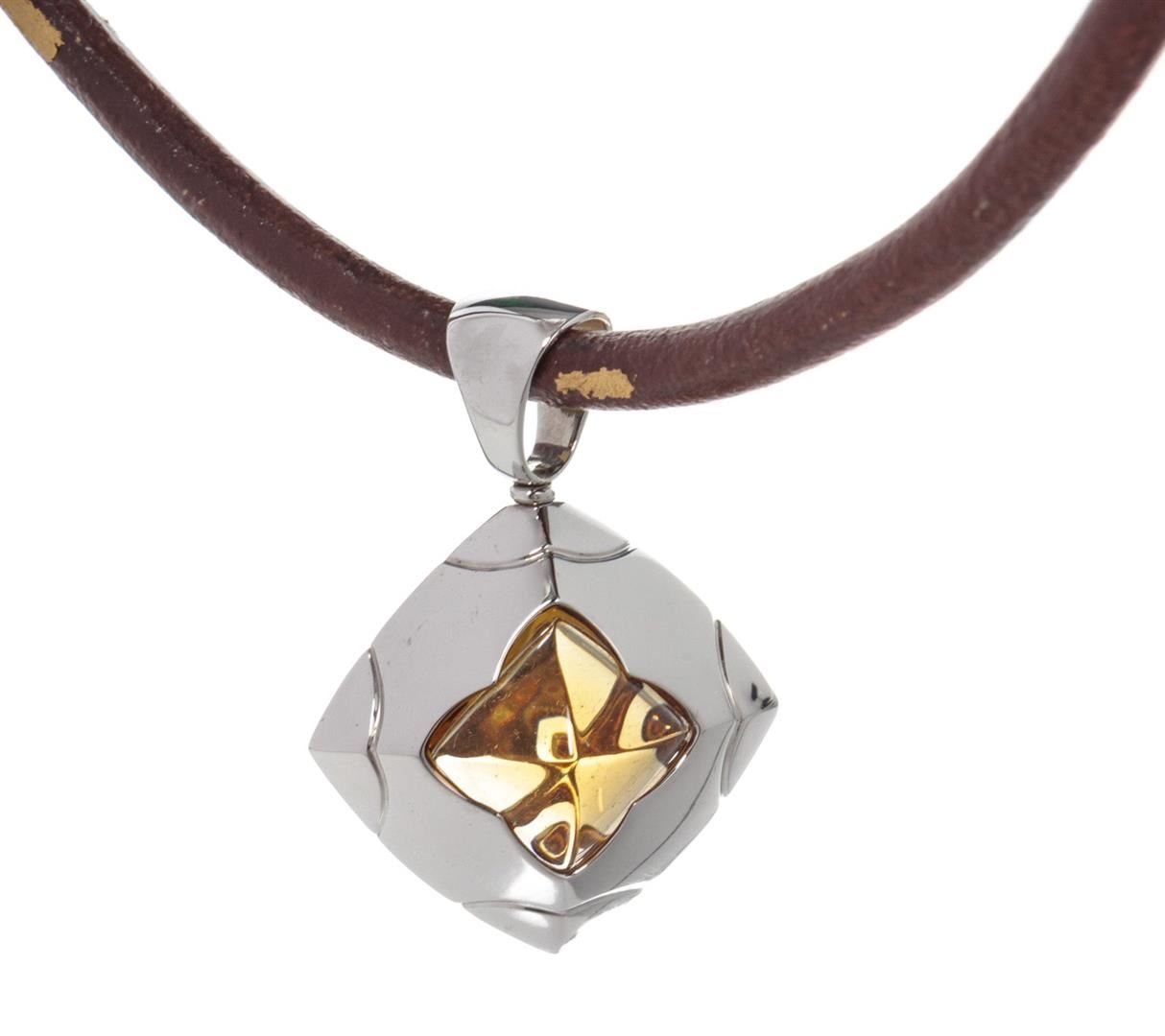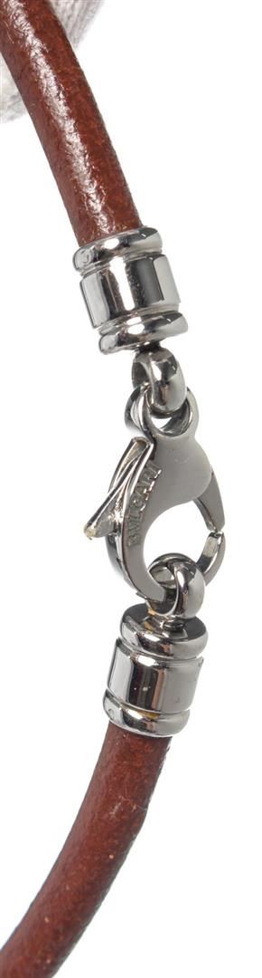 Bvlgari Brown Leather Pyramide Pendant with leather, silver-tone hardware.