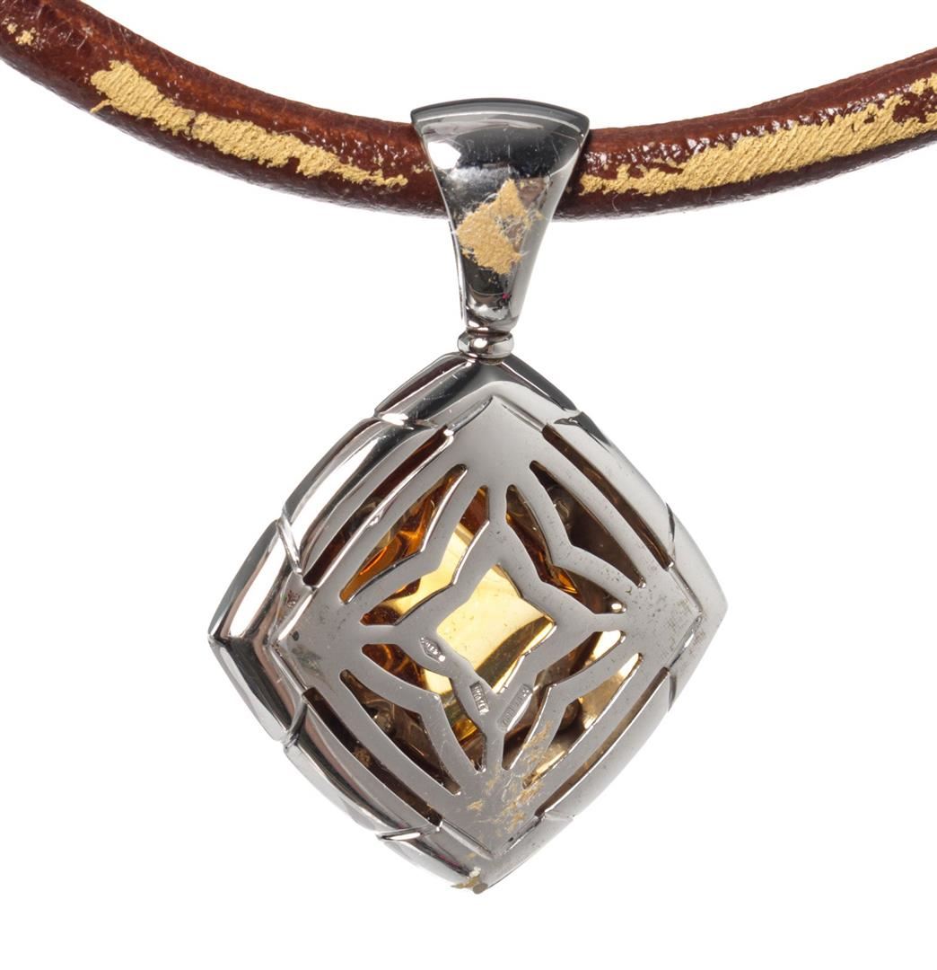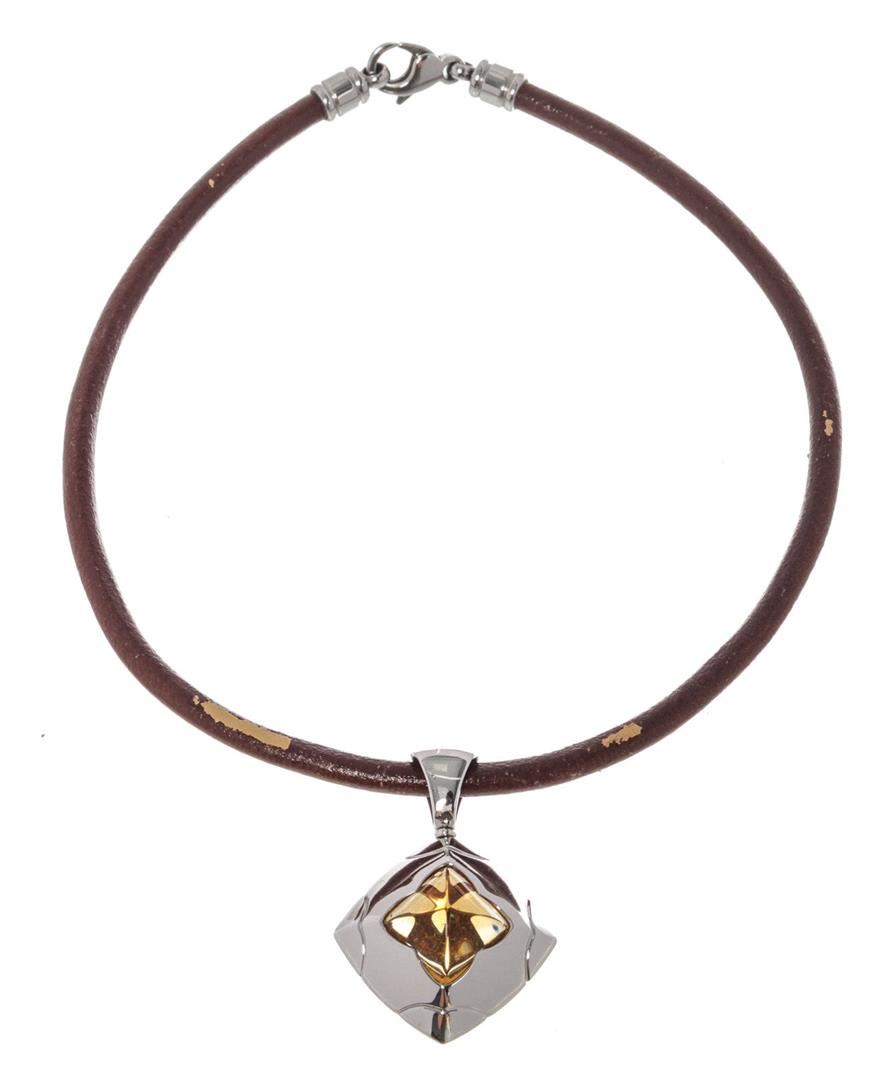 Bvlgari Brown Leather Pyramide Pendant with leather, silver-tone hardware.