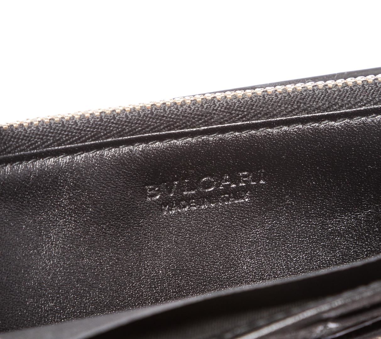 Overall flap snap closure. Interior is leather lined with ten credit card slip pockets, two compartments with zipper pocket partition and one billfold slip pocket.