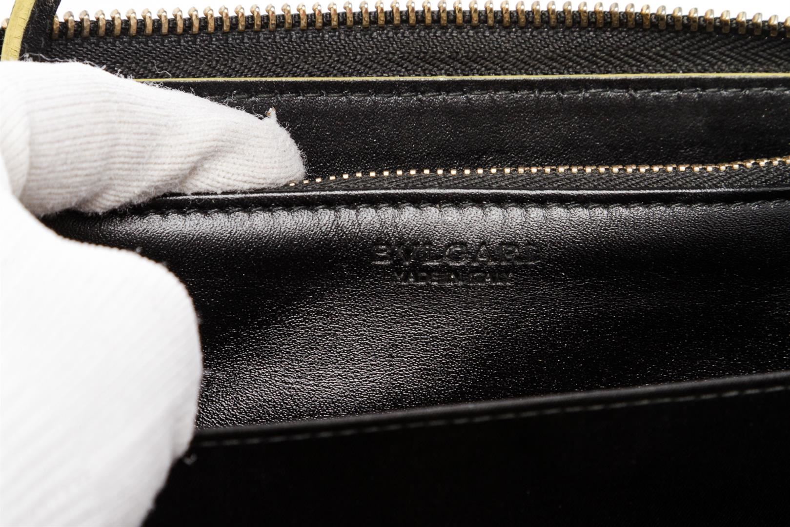 Overall zip around closure. Interior is leather lined and includes two compartments, one zipper pocket, six credit card slip pockets and two billfold pockets.