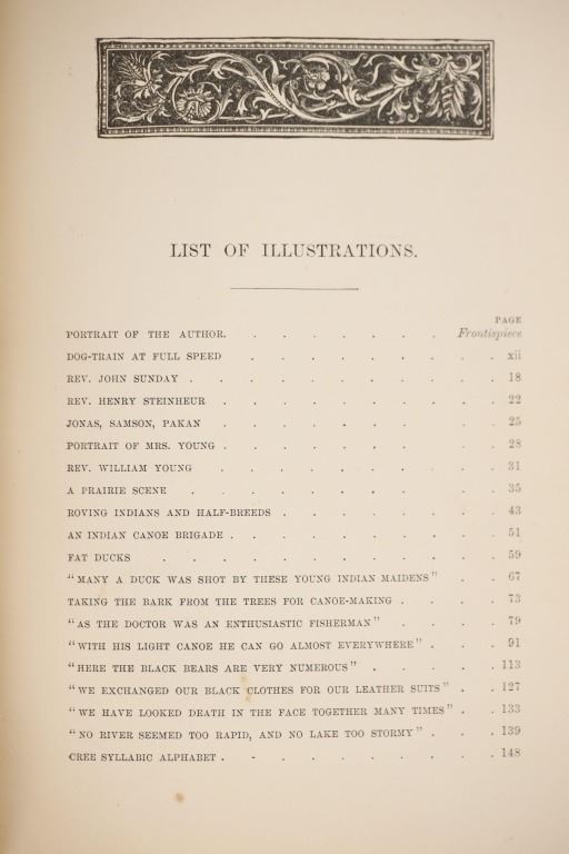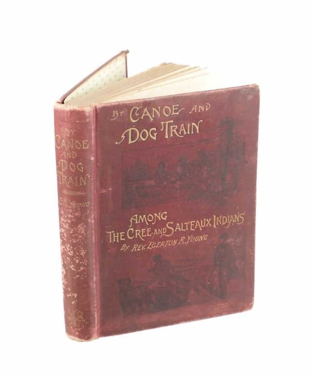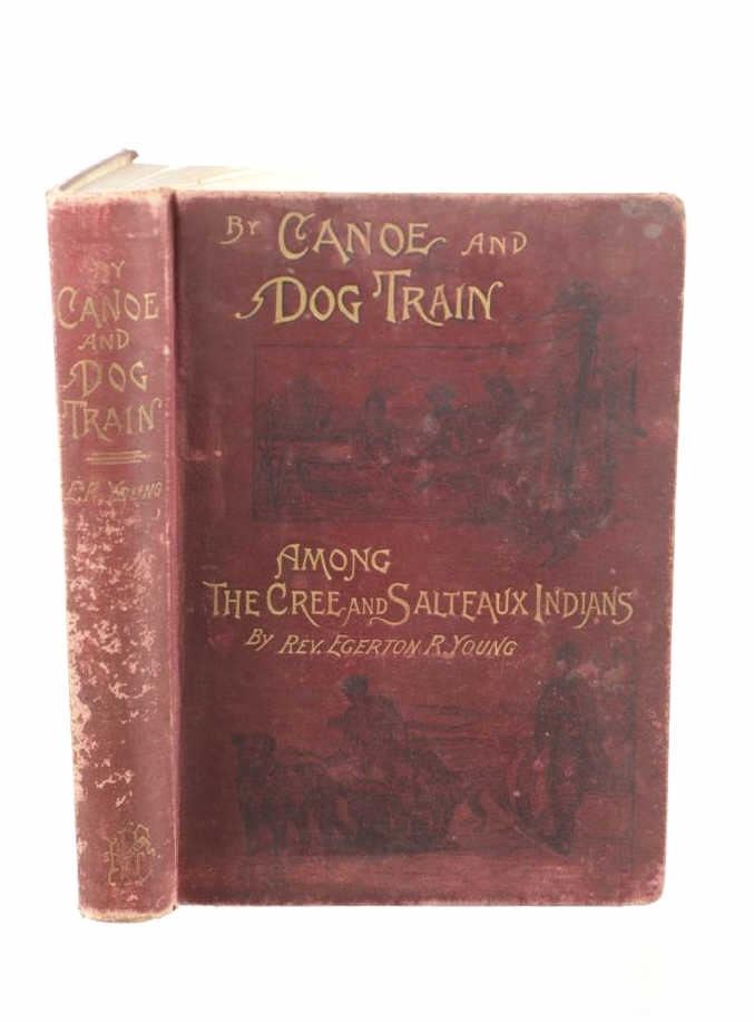 Included in this lot is a Rare First Edition of "By Canoe and Dog Train Among the Cree and Salteaux Indians" by Rev. Egerton R. Young, 1890, publishers Hunt & Eaton, New York; Cranston & Stowe Cincinnati. To be a missionary to Canadian Indians in the late 1800s meant you had to be brave and relentless. It meant nearly freezing when sleeping outside in 50-below-zero weather. It meant canoeing upstream for hundreds of miles to reach remote Indian villages. It meant eating wild cat and other stranger things, or eating nothing for days at a time. But it also meant you were privileged to present the good news of the true Great Spirit to those who were often misunderstood and mistreated. The adventures in this book are rivaled only by the incredible conversions of those who saw the Creator in nature and then worshipped Him too. You will be challenged and inspired by the results of one man who went where the Lord led, with little regard for himself. This is Young's account of his time among the Cree and Saulteaux Indians. This work features full-page engravings including one of a dog-sled team through snowy Canada. This maroon coloured cloth bound gold gilt stamped illustrated hardcover is in fair to good condition, front cover stamped vignettes still visible but fading, gold gilt still clean and bright on front cover but fading on spine. The spine is loose spine and there is scuffing exhibited on edges. Intact pages exhibit age tanning and foxing throughout. Measures 8"L x 5.75"W x 1"D, weight 1lb 4oz.*