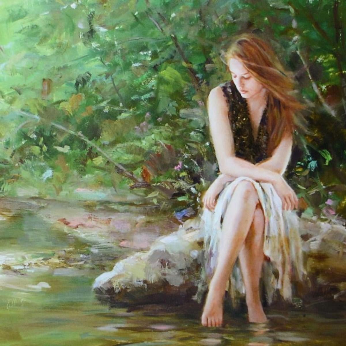"By The River" is a limited edition giclee on canvas by Vidan, nephew and protege of Pino (1939-2010). Numbered and hand signed by the artist. Includes Certificate of Authenticity. Measures approx. 28" x 20" (image).