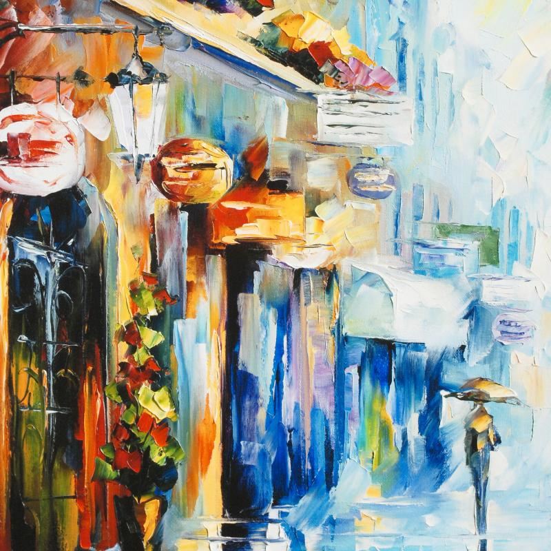 Leonid Afremov's masterful use of color and texture make his paintings unique collectibles that are sure to brighten any wall. "By the Light" is a limited edition giclee on canvas. The piece is numbered and bears the artist's authorized signature. This piece comes gallery wrapped. Includes Certificate of Authenticity! Measures approx. 18" x 24" (image).