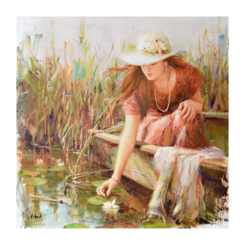 "By the Pond" is a limited edition giclee on canvas by Vidan, nephew and protege of Pino (1939-2010). Numbered and hand signed by the artist. Includes Certificate of Authenticity. Measures approx. 30" x 30" (image).