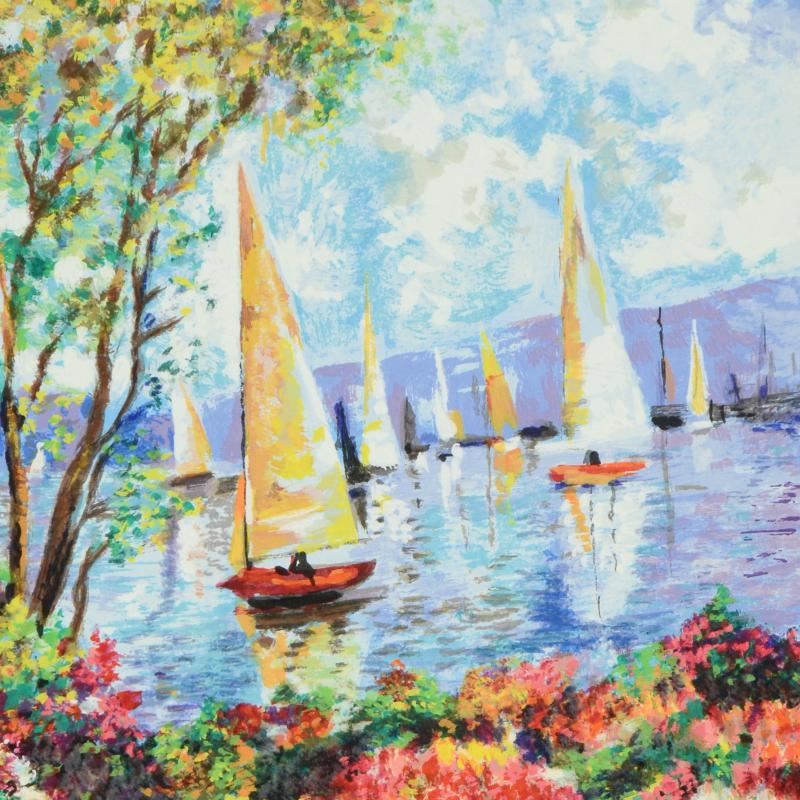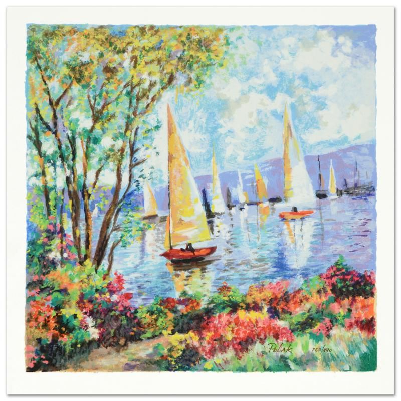 "By the River" is a limited edition serigraph on paper by Dimitri Polak (1922-2008), numbered and hand signed by the artist! Includes Certificate of Authenticity! Measures approx. 13.5" x 13.5" (with border), 12" x 12" (image).