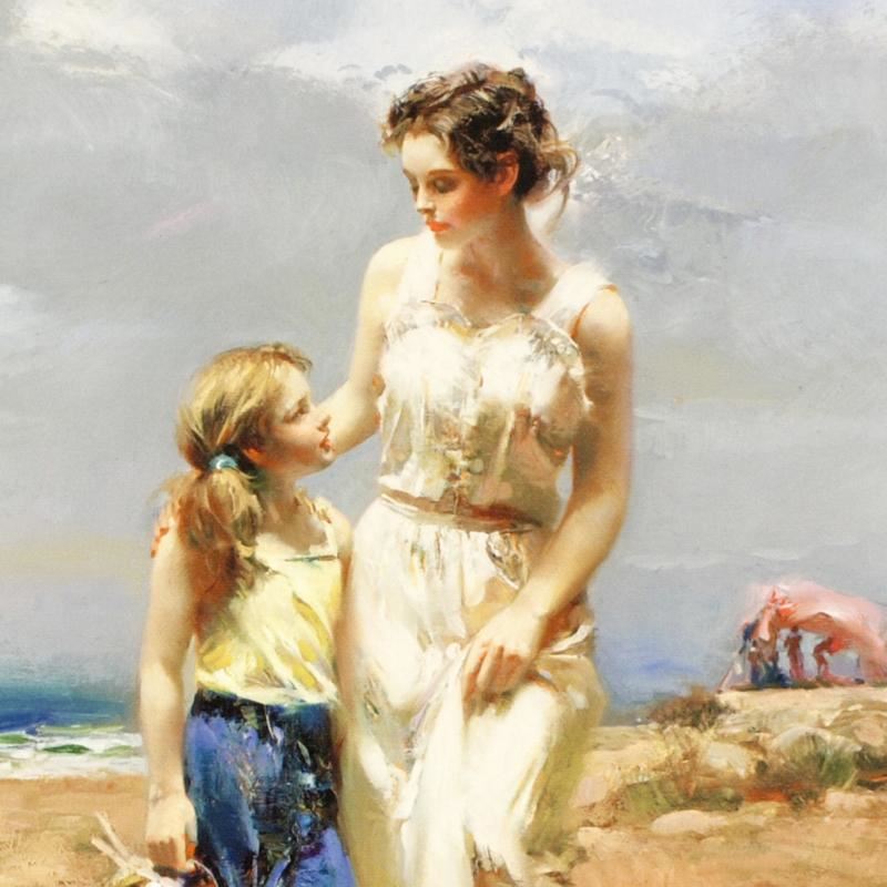 "By the Sea" is a limited edition giclee on canvas, numbered and hand signed by Pino (1939-2010). Includes Certificate of Authenticity! Measures approx. 12" x 16" (image).