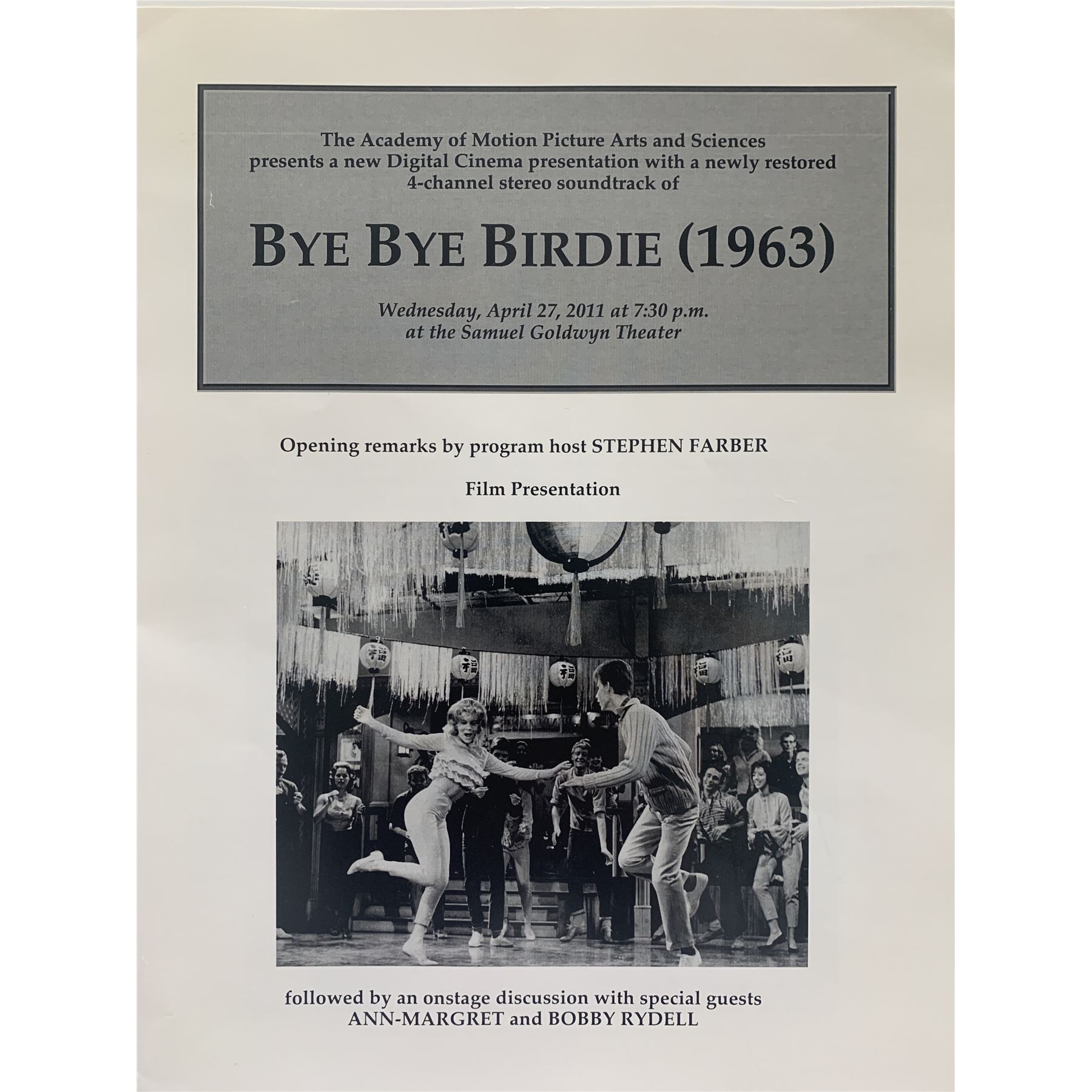 Bye Bye Birdie unsigned program