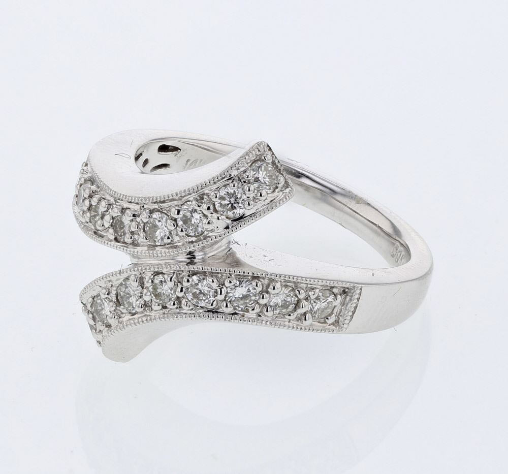 Bypass Diamond Band Prong-set w/ Millgrain in 14K White Gold