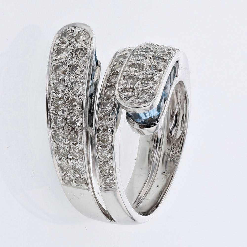 Bypass Diamond Ring Pave-set w/ Topaz in 14K White Gold